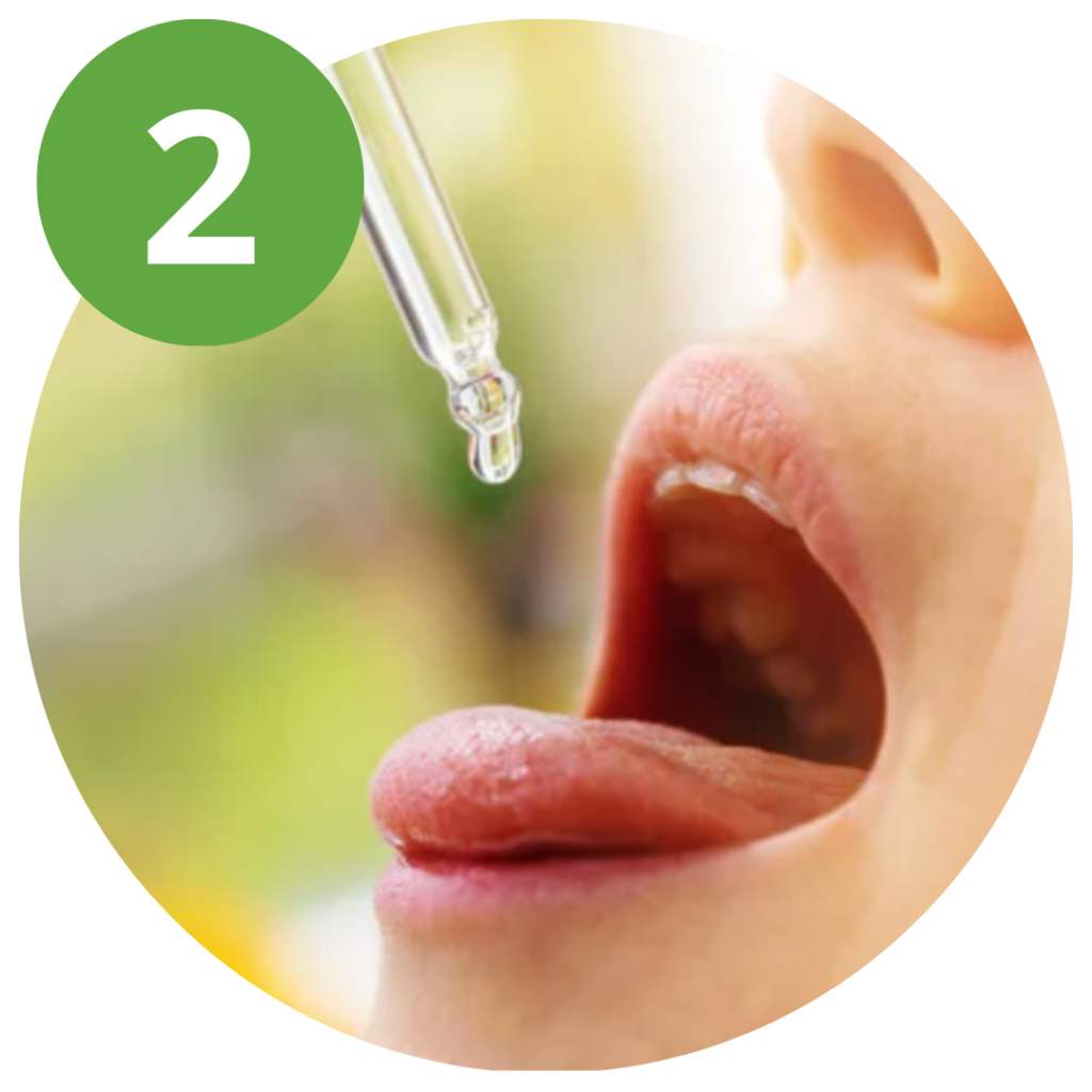 Coloque 12 gotas das gotas debaixo da língua após o almoço